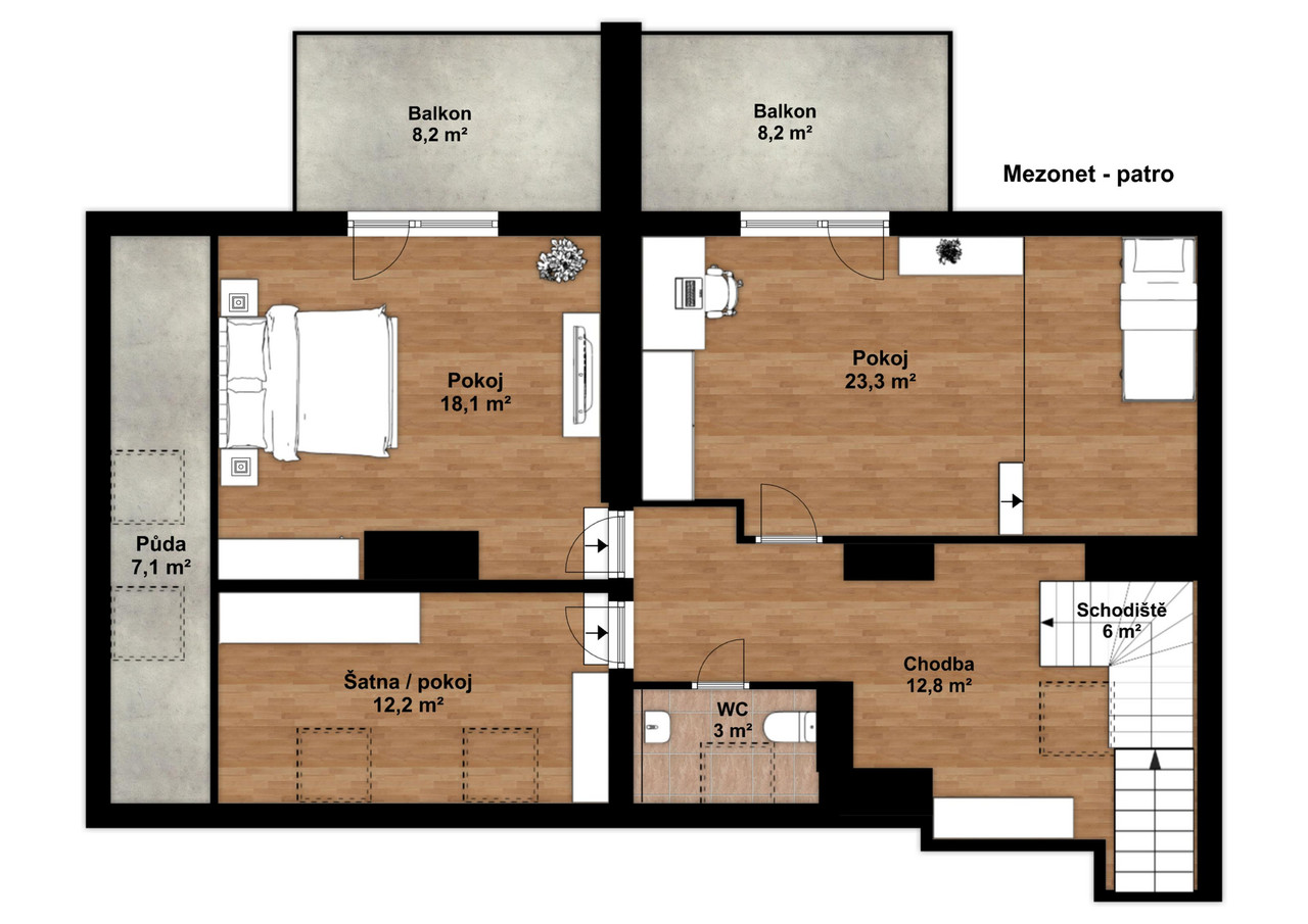 | Plocha balkón: | 1 m2 |