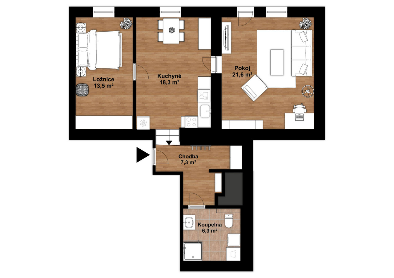 Nabízíme k prodeji světlý byt o dispozici 3+kk/2+1 a celkové ploše 67 m², který se nachází v přízemí zrekonstruovaného domu v ulici Otakara Ševčíka v centru Písku.